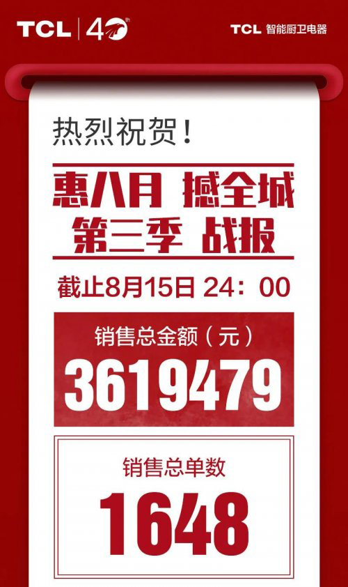 近期,TCL智能廚衛面臨接連遭受河南強降雨天氣、疫情再度雪上加霜后的消費者市場,積極提供暖心服務,先后舉辦6月年中盛宴及第三季#惠八月 撼全城#全省聯動促銷,員工和經銷商伙伴們克服重重困難,因情制宜,線上聯合線下,把溫暖送給消費者及客戶,這些活動得到大家的肯定與認可,也將TCL智能廚衛的暖心服務和趣味傳播送入萬千終端。