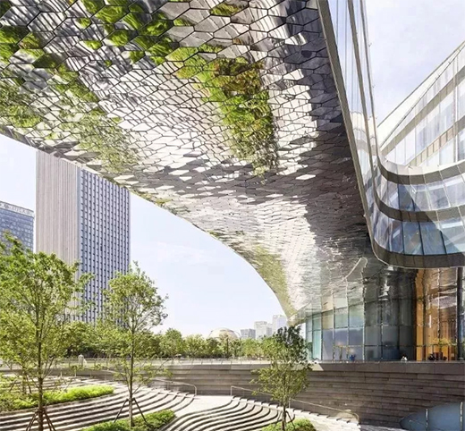鏡面不銹鋼表面可形成反射,將周圍的景物通過鏡像形成投射,以虛空的形式反射出真實的內容。在景觀設計中,可以通過增加鏡面不銹鋼設計,擴大空間,提升場景亮點,形成科技感,未來感。但如果使用不當也會形成光污染、容易擦花,影響美觀等負面影響,需要加強后期養(yǎng)護。當然鏡面不銹鋼也不可過多使用,會給人帶來緊張感,造成的空間體驗感并不好。