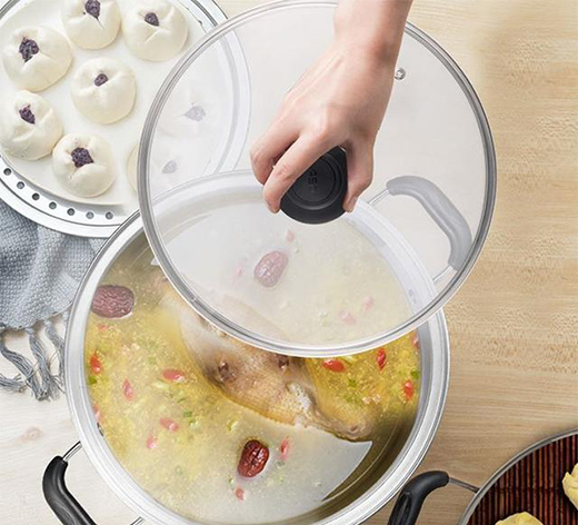 下面的鍋體采用了直角鍋身的設(shè)計(jì),時(shí)尚的造型又增添了新的功能,鍋壁質(zhì)感厚重,可以用來煮火鍋,家庭聚會就用這個(gè)鍋來吃火鍋真的特別的方便,而且304不銹鋼的材質(zhì),抗腐蝕,清洗起來也特別的容易。對于廚房空間不大的家庭,這款蒸鍋可疊放的設(shè)計(jì)也更加節(jié)省的收納空間,各個(gè)方面的設(shè)計(jì)真的太棒了。