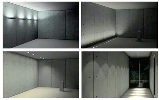 <<<也可以運用不同的燈光洗墻方式打造餐廳形象墻