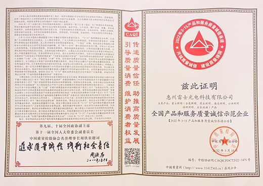 - 雷士照明榮膺“全國產品和服務質量誠信示范企業”! - 2022/03/29