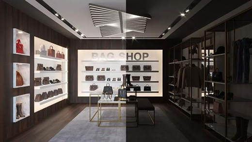 △精品店的燈光聚焦于商品周圍,為購物者創(chuàng)造了舒適的體驗氛圍
