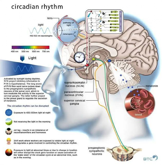 直到2017年,諾貝獎生理學(xué)和醫(yī)學(xué)獎授予了三位科學(xué)家,表彰他們發(fā)現(xiàn)了“控制晝夜節(jié)律生物鐘的分子機制”,為光照對人類健康的影響提供了依據(jù)。