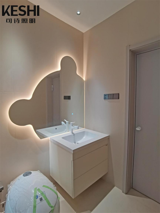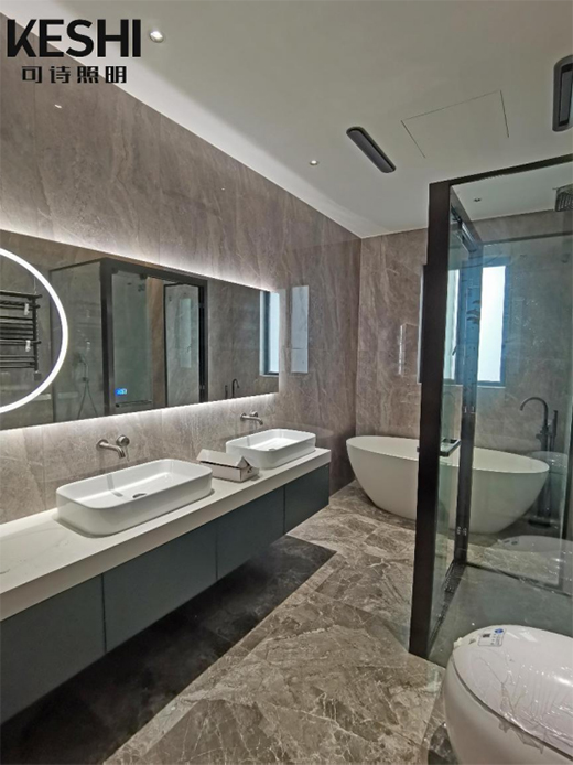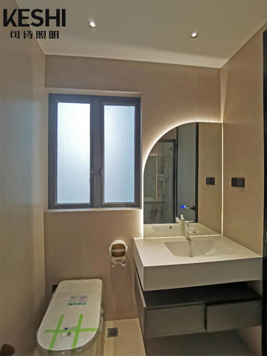 次臥衛浴間采用的射燈都是KESHI可詩照明的防水射燈,不懼直接潑水,防水霧能力超強,應用在潮濕的空間最為適宜。