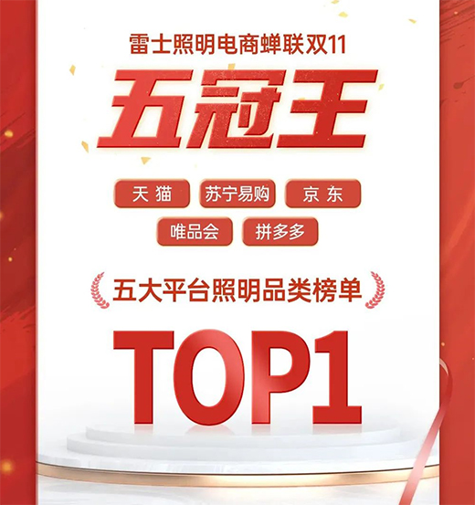 雷士照明電商今年“雙11”蟬聯天貓、蘇寧易購、京東、唯品會、拼多多五大電商平臺照明品類榜單TOP 1。此外,雷士照明抖音銷售額同比增長242%,拼多多平臺同比增長83.6%,勇奪照明行業全平臺直播銷售額TOP 1。