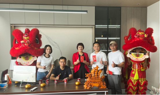 是日,晴空萬里,鳥語花香,嘉韜照明迎來盛事時刻。喜慶的音樂,繽紛的禮花,歡快的舞蹈,烘托出一片喜氣洋洋的熱鬧氣氛。嘉韜照明總經理黃超鵬先生等企業領導在眾人的祝賀下對現場的兩只舞獅進行了“點睛”儀式。一點左眼,寓意嘉韜靈氣滿身;二點右眼,寓意嘉韜“志在乾坤,前程似錦”。