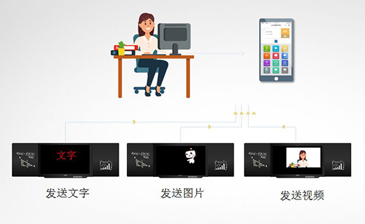 通過登陸物聯網2.0的管理界面,管理者可以一鍵向管控的智能黑板發送文字、圖片甚至視頻文件啦!不僅可以群發/單個發,還可以分別向多臺設備發送不同的內容,這個過程一分鐘就可以完成。
