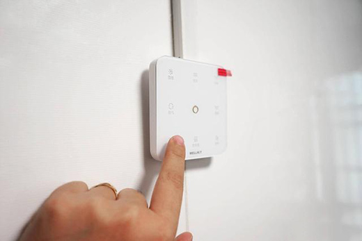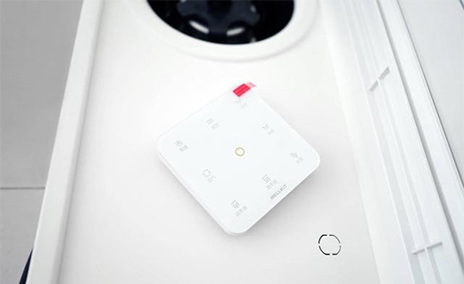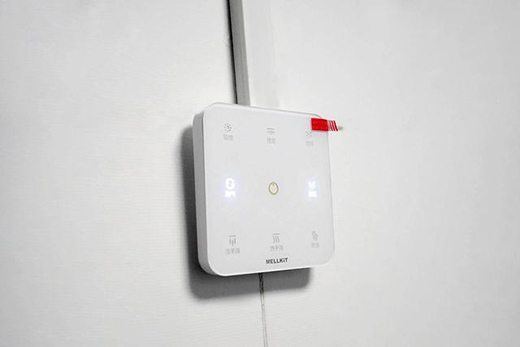 產品的遙控開關為有線的86型觸摸控制器,在控制器的背面有連接主機的接口。有線的控制器終究是比無線型的控制器要稍微遜色一點,但是這完全不影響它的使用 。在控制器的界面上有9個可以觸控的功能,正中間是產品的電源開關,四周分別環繞著取暖、擺頁、照明、除菌干燥換氣等基礎功能 。高光屏的智能觸摸控制,方便了我們的安裝與操控 。