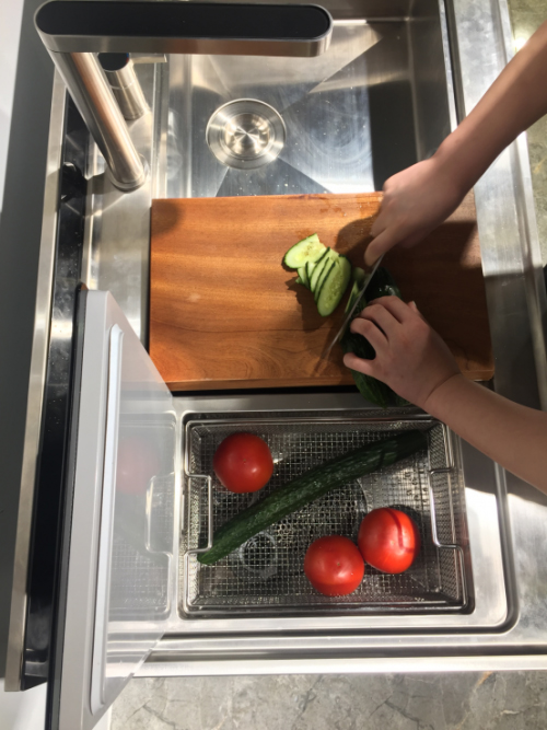 火星人D7集成洗碗機(jī)將眾多廚房物件通過一臺機(jī)器進(jìn)行集成,通過水槽上的復(fù)式“小臺階”擴(kuò)大空間利用率,在做飯時(shí),站在原地不動(dòng)就能夠?qū)⑾床恕r水、切菜、裝盤等步驟一氣呵成的完成。