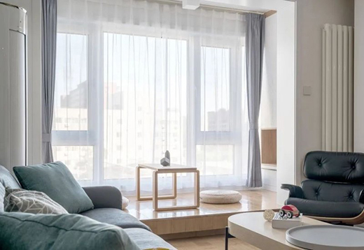 直接將陽臺并入到客廳,相當于擴大了一個空間,使用功能上有更多的可能性。