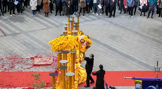伴隨著陣陣鼓聲,精彩的舞獅節目正式開始。六頭靈巧活潑的“雄獅”在鑼鼓聲中進行了上凳表演、樁陣表演、高桿表演等,走鋼絲、騰空跳等高難度動作輕松完成,引得一片掌聲與歡笑聲。