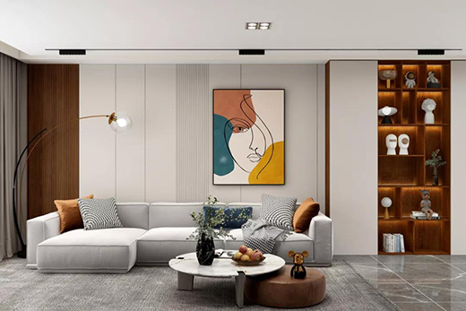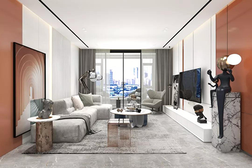 時尚永遠跟色彩緊密連接,就比如愛馬仕橙將奢華與高貴刻入肌理,也將優雅與華麗滲透心底。把愛馬仕橙加入背景墻一角,讓平平無奇的米色瞬間張力十足,搭配灰色布藝沙發、古銅色與白色大理石的茶幾、金屬系列擺件等等,一切都顯得格外恰到好處。