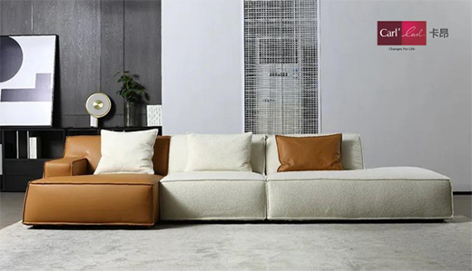 卡昂“焦糖瑪奇朵”沙發整體采用焦糖色科技生態皮+奶白色泰迪絨,白色與棕色,化作天生的搭檔,彼此滲透交融,碰撞出驚人的能量與張力,打破空間的單一感與沉悶感,突顯格調又不炫耀。極簡藝術和色彩美學讓空間情緒純粹而寧靜,將矛盾感表達得恰到其分,營造出時尚前衛的感覺。沙發采用組合式的連接結構,用戶可以自由組建心目中的理想組合,形成不同形式的沙發群,即可變換新穎的外觀。“Less is more”,正是現代人探尋的幸福良方。