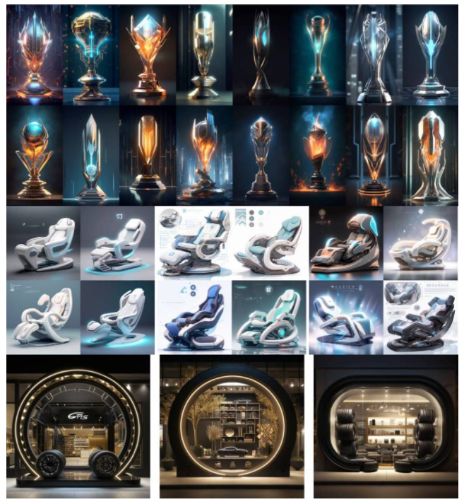 不僅僅是目前市場上俯拾皆是的“包裝”、“海報”設計,對于已經邁入AI設計2.0時代的洛客來說,專業咨詢設計與AI創新生產力也在不斷碰撞出新的火花。在為中糧面粉提供整案設計服務的過程中,除了利用設計師的經驗智慧進行產品定義,也同樣借助AI高效出具高端設計方案,完成初級農產品領域的創新。同樣,在為數智化軟床供應鏈企業打造定制化設計方案時,先通過AI訓練得到1個定制化大模型,再根據客戶的需求加以若干個精準場景,以更快速度實現軟床品類創新。除此之外,洛客越來越多的設計方案,如無畏契約全球冠軍賽獎杯、老年人自動洗澡機、安亭古街漂移式展廳等,均融入了AI設計的創新力量。