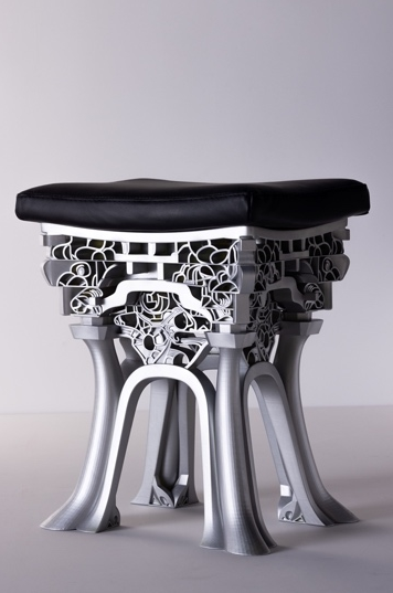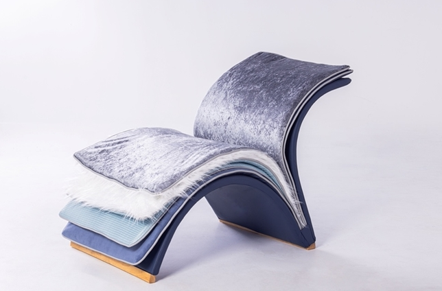 Line和Pierron是來自巴黎Line & Rapha?l的設計二人組合,專門制作將傳統工藝與現代科技完美結合的家具。他們的作品《Armchair PETALE》與HKF&DA攜手合作打造。這款坐椅宛如一匹畫布,圖案在椅背和兩側延展。通過將實心胡桃木與金色3D打印鑲嵌元素相結合,設計師實現了質感與材質的獨特融合。