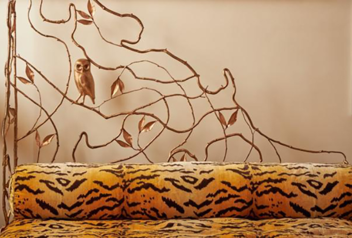懸掛在保琳臥室中,令人驚艷的《植物結構鏡》(Structure Végétale mirror,估價:20萬至30萬英鎊)亦是克洛德的獨創之作。這面氣勢磅礴的鏡子裝飾著放大比例的銅葉,使日常生活的片刻也能沐浴在大自然的奇幻詩意之中。