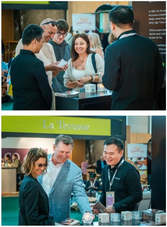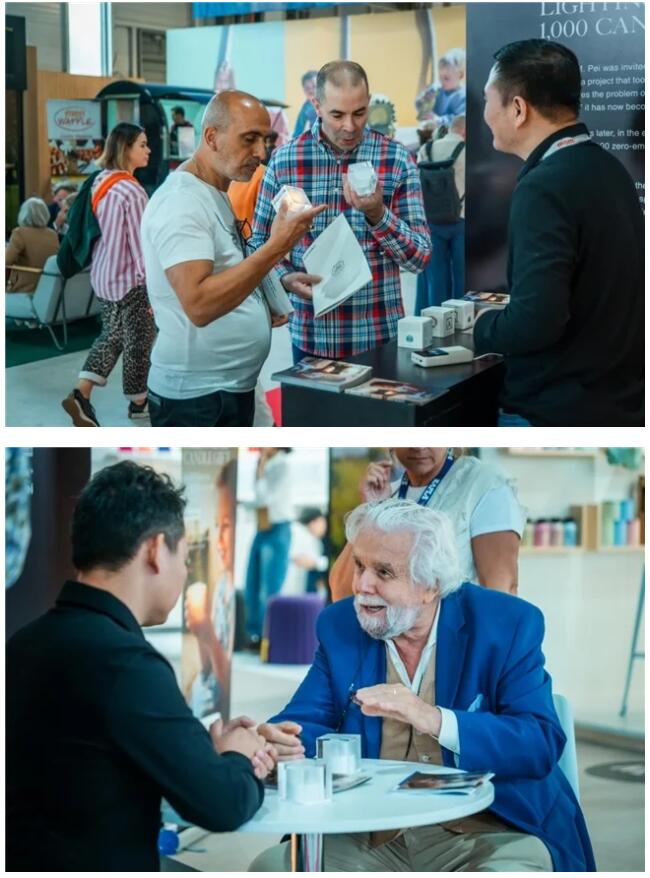 展會期間,蠟燭免費贈予參觀者。張建民表示“希望環保理念走進巴黎街巷”,一位法國設計師點亮后感慨:“這抹光藏燭光溫柔與環保責任,是東西方美學融合。”參觀者握住的不僅是設計品,更是跨國默契——對美與家園的珍視,本就是連接不同文化的紐帶。