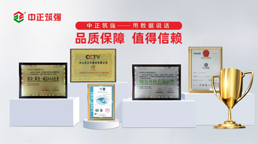中正筑強隸屬于中山市正中建材有限公司,是一家集研發、生產、銷售為一體的現代化高新技術企業。專注建筑輔材行業10多年,公司建成了20余畝現代化生產基地,年產能10萬噸,供貨穩定;且擁有卓越的技術研發團隊、先進的生產設備及嚴格的質量管理體系,為公司實現持續發展提供更有力的軟硬件支撐!本著“品質第一,誠信經營”的宗旨,中正不斷開拓創新,與時俱進,不僅被授予“中國建材工業經濟研究會產品質量專委會理事單位”稱號,還榮獲了“質量·服務·誠信AAA企業”、“綠色環保首選品牌”、“中國十大膩子粉品牌”、“中國十大瓷磚膠品牌”、“中國十大砂漿品牌”等榮譽。榮譽的獲得正是中正筑強堅實腳步的印證,也是中正筑強多年厚積薄發豐收的碩果。