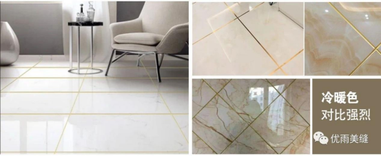 美縫劑冷暖色搭配是指在鋪貼材料的縫隙中填充冷色系和暖色系相互搭配的美縫劑。如果瓷磚偏黃、偏橙,可以選用金色、黃色等偏暖色系的美縫劑;如果瓷磚偏青、偏灰,可以選用銀色、灰色等偏冷色系的美縫劑。暖色系讓空間變得溫暖、舒適,而冷色系使空間變得冷靜、清新。冷暖色搭配產生強烈的對比效果,使鋪貼材料更加突出,適用于各種室內空間。