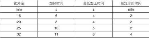 3.在管端測量并標繪出熱熔深度,熱熔時間應符合下表技術參數的要求
