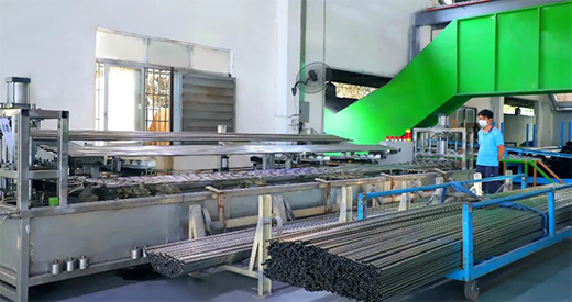 目前擁有在線固溶焊管線6條,在線固溶是在制管的過程中將管體加熱到1100度,實現焊縫整體固溶。