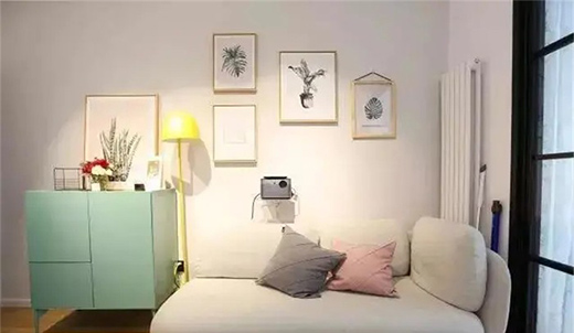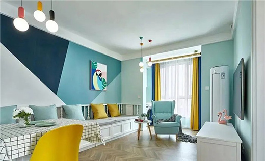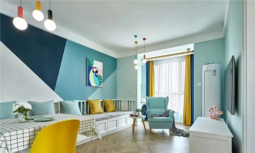 客廳背景墻是展現小清風的重點位置,最重要的位置當然要搭配的最漂亮顯眼。墻面選用幾何色塊拼接,色彩選擇綠色的同色系,這樣的拼接設計簡直太漂亮了!這么漂亮的設計當然不能只能放在小小的沙發背景墻。所以這整面墻都都采用這樣的搭配,不僅在視覺上起到延伸的效果,而且將這面墻完美的呈現在眼前,讓人眼前一亮,立馬確認這是小清新無疑了。
