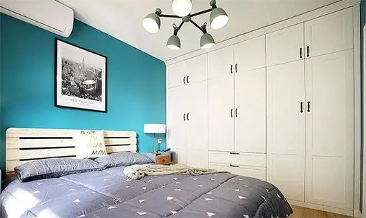 當然不可能,貝殼粉要做到完美。來到臥室又換了另一種感覺,氣氛的更換我們怎么做到的?當然是用墻面色彩,臥室的床頭背景墻這次選用藍色,白藍的搭配是都市生活前衛潮流的象征,非常漂亮。