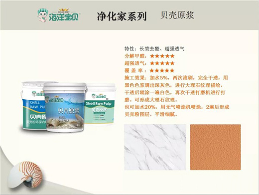 在國內(nèi),隨著涂料研發(fā)技術(shù)的進步,海洋寶貝貝殼粉異軍突起。海洋寶貝貝殼粉是以水為溶劑的內(nèi)墻涂料,采用天然貝殼為原料,經(jīng)過清洗、低溫煅燒、研磨等多種工藝制成。