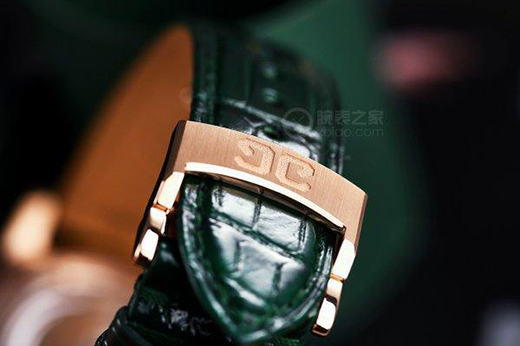 腕表搭配的是一條綠色路易斯安那鱷魚皮表帶,和腕表整體的色調比較貼合,所以看上去更顯和諧。