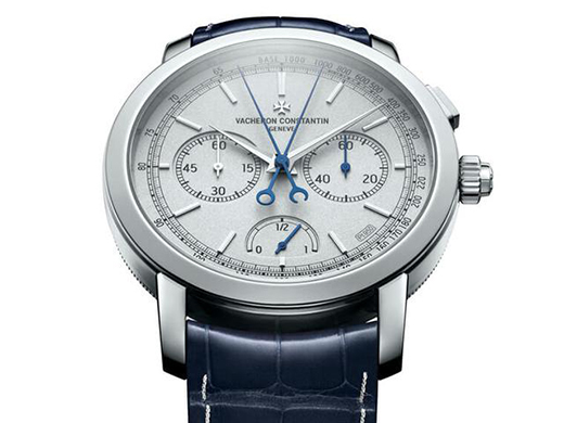 Traditionnelle超薄雙秒追針計時碼表的面盤格局大致維持與前作相仿,例如面盤外緣有測速計刻度、3點方向為計分盤、9點方向為小秒盤,至于6點方向則是手表48小時動能的顯示盤,其中走時功能指針為白金材質,而與計時功能相關的指針則改以藍鋼處理(動力儲存顯示指針算是例外),不同功能的指針看起來一目了然。