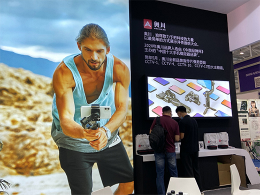 在本次展覽中,與智云、飛宇、浩瀚等一眾穩定器前輩同臺競技的行業新星“奧川”表現十分亮眼。其經典標準三軸穩定器SMART S1及可折疊穩定器新品SMART XR引人矚目,憑借優良做工和極其穩定的性能表現吸引了大量觀展客商駐足咨詢和現場體驗操作,不少專程來觀摩和了解市場行情的采購商們當即預定樣品并洽談進一步合作。