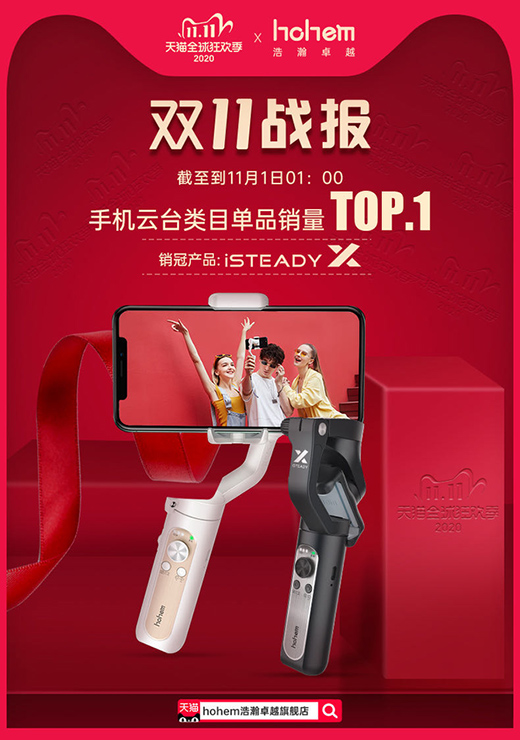 雙十一手機穩定器黑馬誕生,浩瀚卓越穩定器天貓銷冠