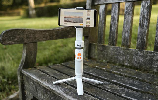 智云Smooth XS是一款緊湊型兩軸智能手機穩定器,整個設備由各種塑料材質制成,正面的橡膠握柄和背面的雕刻式指托,能夠在手中保持合理平衡的感覺。Smooth XS收起后的高度減小到了可裝袋的190mm高度,并且在完全展開時可提供52cm的可觸及范圍。它具有可調節的智能手機安裝座,可調節長度的伸縮臂以及手柄內置的一系列物理控件。平移穩定器位于伸縮臂的頂部,而旋轉穩定器則位于智能手機支架的后面。可以主動平衡左右及旋轉方向,但卻不能上下傾斜。