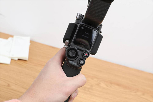 值得一提的是,這款穩定器在手柄的位置上設計有一塊1.4英寸的可觸控液晶顯示屏,在調節參數和使用其他智能操控的時候會更方便,還能夠查看智能跟拍的效果,或者可以與大疆Ronin APP連接,將其當成是一塊監視屏來使用,而且在操作中發現響應比較迅速,讓操作更加簡單。