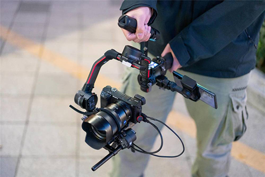大疆RS 2具有良好的適配性,可以支持多樣的影像器材。除了市面上常見的諸如尼康Z 5、Z 6單反與佳能5D4等微單與單反器材,大疆RS2還支持諸如BMPCC 6K+EF 24-70mm f/2.8以及RED Komodo+RF 24-70mm f/2.8等電影級產品。