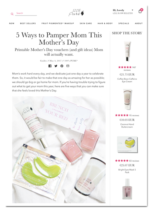 如何把促銷做得再精致一點?某護膚品獨立站使用了“5 ways to pamper mother(5種寵愛媽媽的方法)”這一主題,打造了一份官方的禮物清單,相當于為消費者創造了一個購物的場景,值得參考。