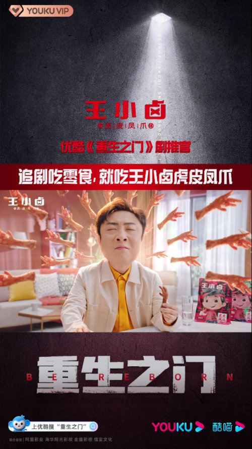 近日,正在熱播的懸疑劇《重生之門》即將迎來大結局。這部由實力派演員張譯和新生代頂流偶像王俊凱領銜主演的網劇,自播出至今一直備受關注,熱度、口碑更是不斷飆升,不僅是繼《恰似故人歸》后優酷史上第二部熱度值破萬的熱播?劇,更是優酷站內熱度值最快破萬的爆劇,且目前已經連續4天熱度值破萬,是2022年取得播放日冠最多的懸疑劇。在這部熱劇中,王小鹵再次以趣味十足的廣告強勢圈粉。“追劇吃零食就吃王小鹵虎皮鳳爪。誰不吃我都會很傷心的OK?“埋下的梗更是引發粉絲們在微博的熱議。