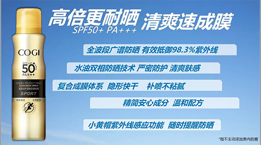 作為國內防曬科技領域的引領者,高姿的防曬家族憑借硬核防曬實力深受消費者熱愛,此次推出的產品“全新升級高姿小黃帽清爽防曬噴霧”,具有一噴清爽、速干隱形的特點,過硬的產品力使其具備了成為爆品的潛力。