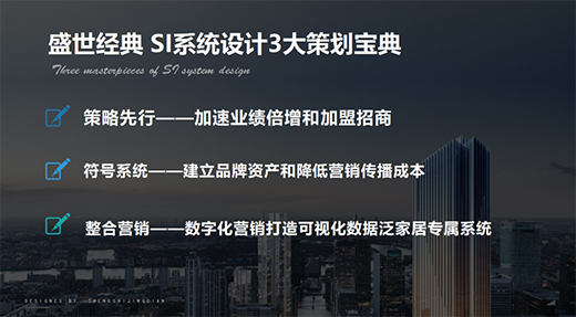 在SI系統設計上,盛世經典在以往服務的經驗的基礎上,結合當今優秀企業案例,創新性推出SI系統設計3大策劃寶典。