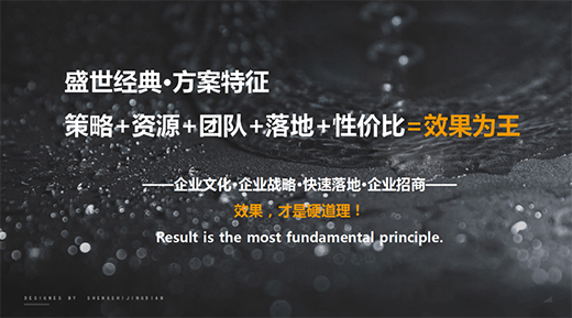 盛世經(jīng)典,專業(yè)品牌營銷策劃機構(gòu)。100+成功案例,專門解決企業(yè)文化落地問題。在理解和了解企業(yè)的基礎(chǔ)上,盛世經(jīng)典會因地制宜地制定整體方案,提升方案的有效性和落地性。我們拒絕創(chuàng)意自嗨,相信“效果才是硬道理”。所有的工作,都聚焦于一個點——落地,助力企業(yè)迅速招商,實現(xiàn)業(yè)績倍增!