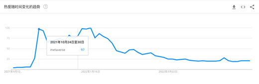 據Google趨勢顯示,Metaverse(元宇宙)作為搜索關鍵詞于2021年10月的最后一個星期達到搜索量的巔峰。