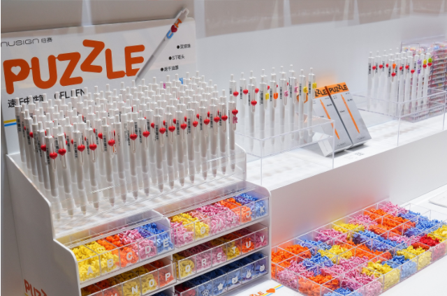 新春限定系列文具,由NUSIGN紐賽品牌00后日本設計師Kim主導設計,靈感源自風靡世界的經典像素游戲《貪吃蛇》。色彩斑斕的mini靈蛇,在游動之間變化演繹數字“2025”,寓意新春大吉大利,生活多姿多彩。新春限定系列新品,涵蓋了本冊、書寫工具、桌面文具和紅包等多個品類。PUZZLE拼趣系列中性筆,設計元素包含不同顏色的26個字母和不同心情的7個符號,這些元素可以在筆夾處自由拼接,為生活增添驚喜與樂趣,滿足個性化情緒價值消費需求。