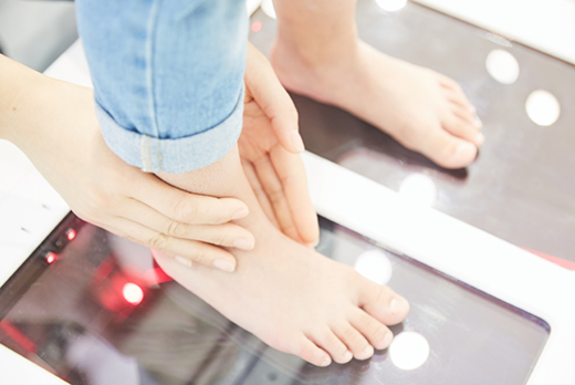 除此之外,江博士健康鞋門店還配有3D智能驗腳儀,為4歲及29碼以上的孩子進行驗腳配墊。該驗腳儀內置多部深度相機,能夠讀取并分析孩子的足印、足弓、足型等各項足部數據,識別出孩子的腳型是扁平足、高弓足、還是正常足。根據孩子足弓高度及后跟斜度,驗腳儀會推薦更適合孩子的鞋墊及鞋子。