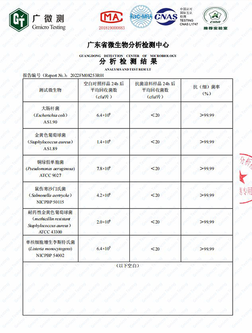 然而雅潔在抗菌技術探索上并沒有止步于前,經過不懈努力,雅潔在抗菌探索中再次取得新突破,在試驗條件下,雅潔產品99%的抗菌率由兩種菌擴展到六種菌,分別是大腸桿菌、金黃色葡萄球菌、銅綠假單胞菌、鼠傷寒沙門氏菌、耐藥性金黃色葡萄球菌、單核細胞增生李斯特氏菌,這是雅潔抗菌技術邁向新臺階的開始,也是雅潔給自己和每一個家庭的一份優異成績。