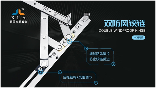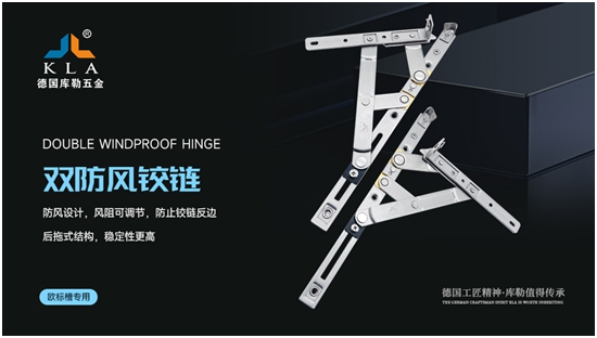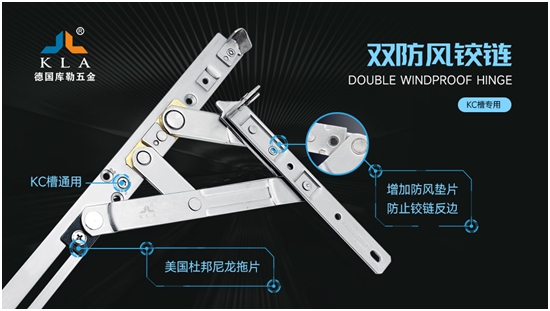 為了提高鉸鏈的防風性,庫勒五金經過88次實驗室測試和3萬次開啟實驗,隆重推出雙防風鉸鏈。此產品結構獨特,不會松脫,開關過程無噪音,而且承重能力強,經久耐用。