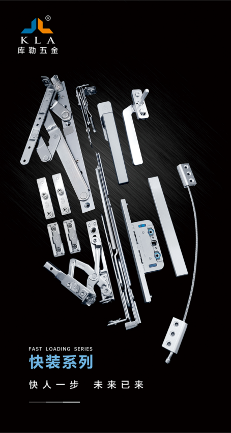 此系列是庫勒五金的主打產品,涵蓋執手、鎖盒、滑撐、鉸鏈、配件包,均采用高品質304材質,免打螺絲設計,安裝快捷、更換方便,不傷鋁材。這是最吸引門窗廠商的特點,它不僅能夠節省了門窗制造過程中的組裝人力成本,實現效率效益“雙提升”,還能引導門窗廠商自動化生產。