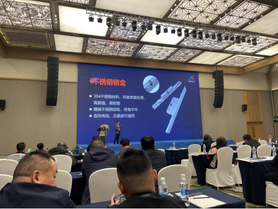 現(xiàn)場(chǎng)分享環(huán)節(jié),庫(kù)勒五金董事長(zhǎng)丁振偉以《庫(kù)勒五金,給你一個(gè)安全的家》為主題為大家做分享演講。從家庭兒童安全問(wèn)題出發(fā),以?xún)和i執(zhí)手為切入點(diǎn),深度剖析了產(chǎn)品在設(shè)計(jì)研發(fā)、原料選用、制造工藝等方面對(duì)門(mén)窗性能的保障作用。丁董詳細(xì)介紹了不銹鋼鎖盒的特點(diǎn),包括采用304不銹鋼、經(jīng)過(guò)精湛研磨表面處理,精鑄304不銹鋼齒輪的終身耐久性,以及雙向傳動(dòng)、無(wú)基座設(shè)計(jì)的通用性。他的演講引起了與會(huì)者的濃厚興趣。