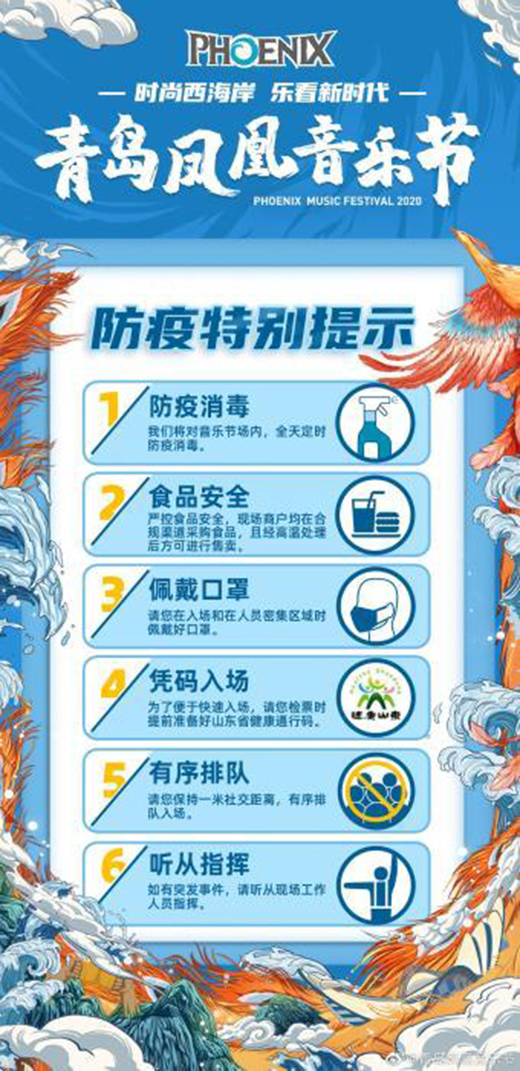 “音樂節千萬場,安全第一條!勤洗手、戴口罩、場內不扎堆,才能更好地觀演啊!”以往希望樂迷們“嗨起來”的音樂節組織者紛紛號召“有秩序地觀演”。