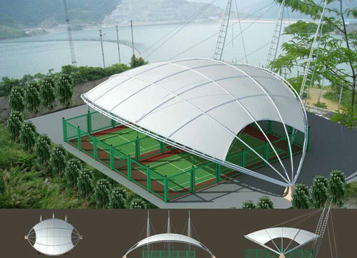 膜結構建筑的突出特點之一就是它形狀的多樣性。由于膜結構曲面所存在著無限的可能性,因此在實際的建筑創造過程中,可以為豐富多彩的空間體系的產生創造條件。雖然對于氣承式膜結構來說,由于充氣后的曲面制藥是圓球面或圓柱面,而可能沒有太多的選擇余地。但是對于以拉索或骨架支承的張拉膜結構,膜結構其曲面就可以隨著建筑師的想象力而任意變化,因此具有廣泛的應用可能。