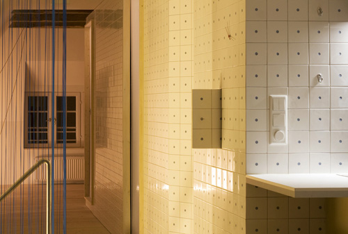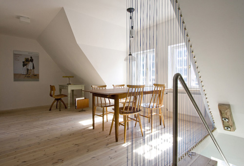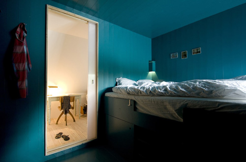 坐落在諾德弗里茲島上的一個不顯眼的原干草倉庫現在變成了一個完整的住宅,它是由建筑師Karin Matz和Karin Matz設計的一種老式小屋。建筑師拆除了所有的墻壁,除了兩間臥室外,這樣確保了視覺連續性和整個空間的節奏。原始的木頭在室內設計中占據主導,在樓梯的旁邊,還有一層薄薄的藍色繩索。使用回漆的弗里西亞瓷磚和陶瓷,是這個島嶼的傳統。其室內3200塊藍色的藍圈瓷磚都是由建筑師和家人手工打造的,大面積的平鋪形成了一種突出但平靜的圖案。而另一邊,兩間臥室都是作為巢穴建造,以暗色為主。